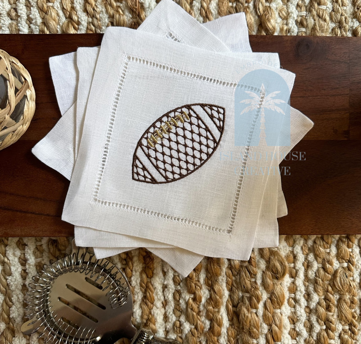 "Island House brought my cocktail napkin request to life. It arrived quickly, considering the quantity. The quality of Kelley's work is next level. I would highly recommend."